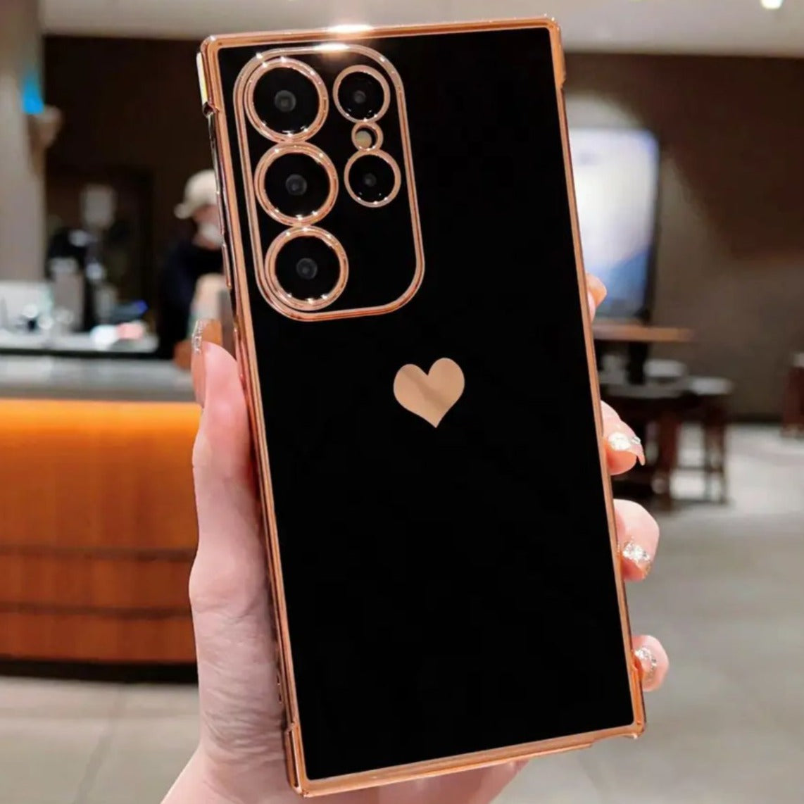 Samsung Galaxy S22 Ultra | Hochglanz/Gold Herz Hülle/Case